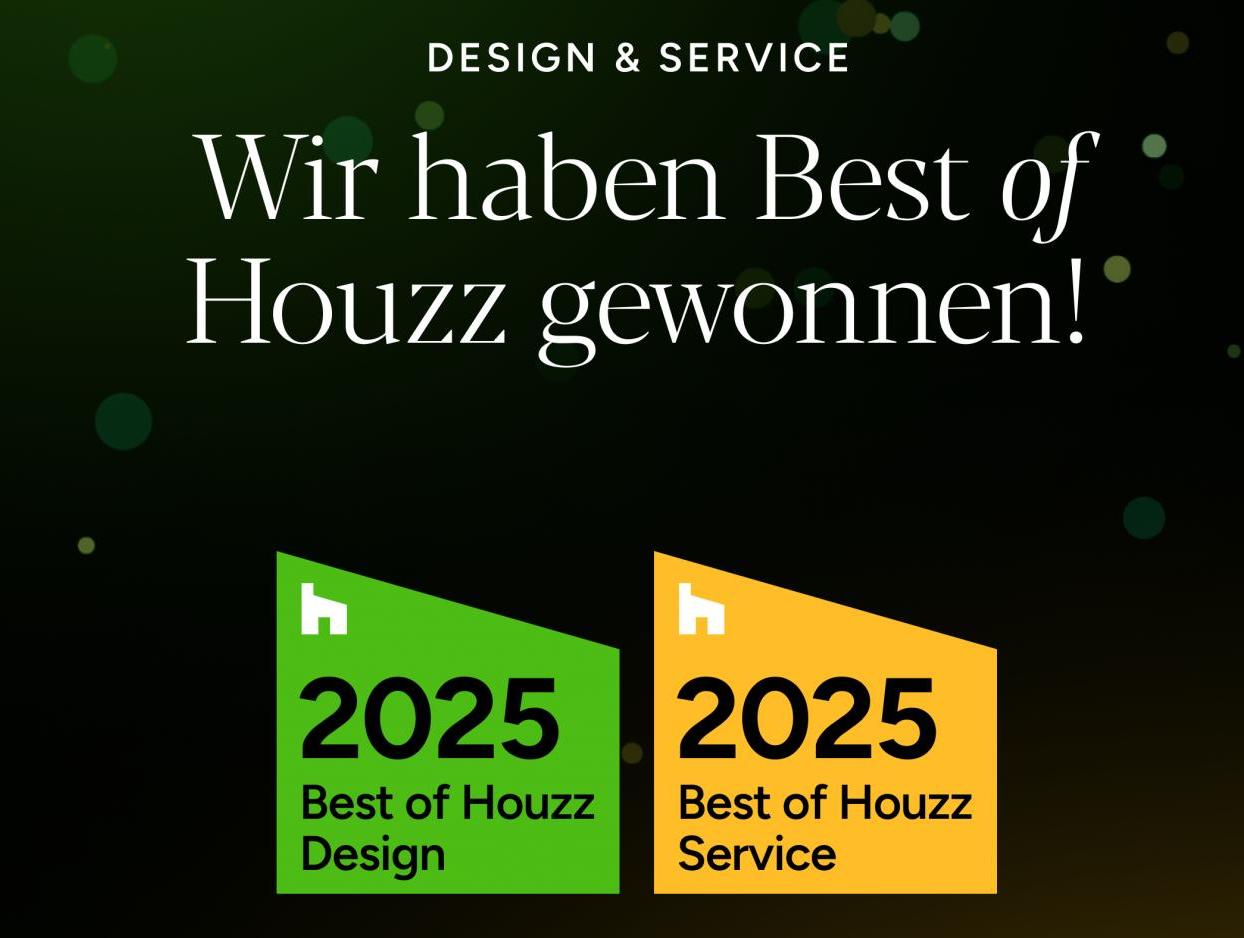 Der „Best Of Houzz”-Award wird jährlich in drei Kategorien verliehen: Design, Service und Fotografie. Die Arbeit der Gewinner*innen des „Best of Houzz”-Awards für Design war in der Houzz-Community am beliebtesten. Der „Best of Houzz”-Award für Service wird aufgrund verschiedener Kriterien verliehen, einschließlich der Anzahl und Qualität der Kundenbewertungen, die ein Experte oder eine Expertin im Jahr 2024 erhalten hat. Der „Best of Houzz”-Award für Fotografie wird an die Architektur- und Interior Design-Fotografen und Fotografinnen verliehen, deren Fotos im Jahr 2024 am beliebtesten in der Houzz-Community waren.
