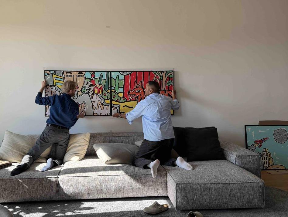 Heute haben wir mit Art Management Grant Morton ein mehrteiliges Bild aus der Galerie Rothamel in Frankfurt bei unseren Kunden aufgehängt. Moritz Götze: "Im Hintergrund die Stadt", 1998, 4 Teile, Originalgrafik, signiert, numeriert