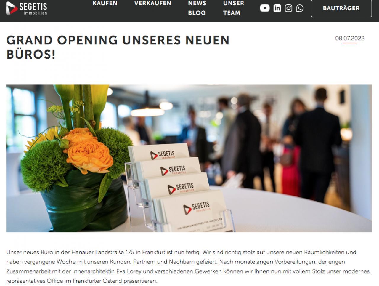 SEGETIS Immobilien GmbH hat ihre neuen Büroräume ins Bild gesetzt. Vielen Dank für die tolle Zusammenarbeit!