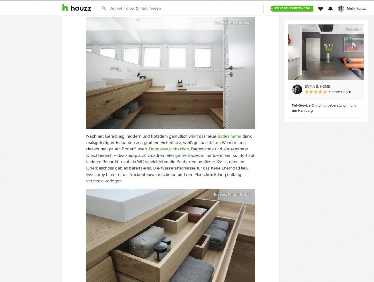 "Herzlichen Glückwunsch! Unsere Redaktion hat eines Ihrer Bilder für einen Artikel ausgewählt, der auf der Homepage von Houzz veröffentlicht wird! Schauen Sie sich den Artikel doch gleich an: Von Mau zu Wow: 3 Bäder im Vorher-Nachher-Vergleich »"