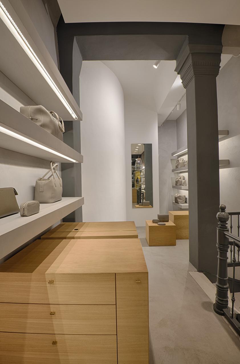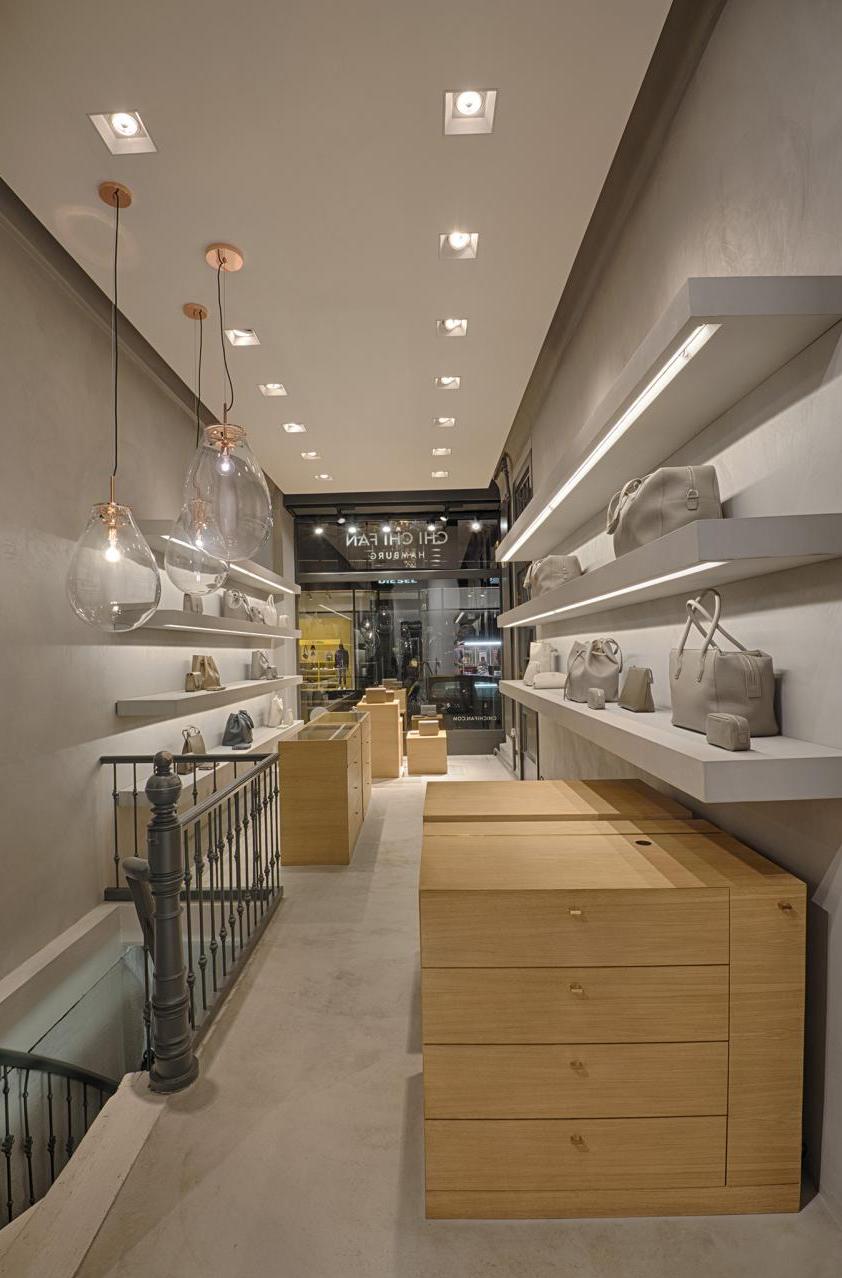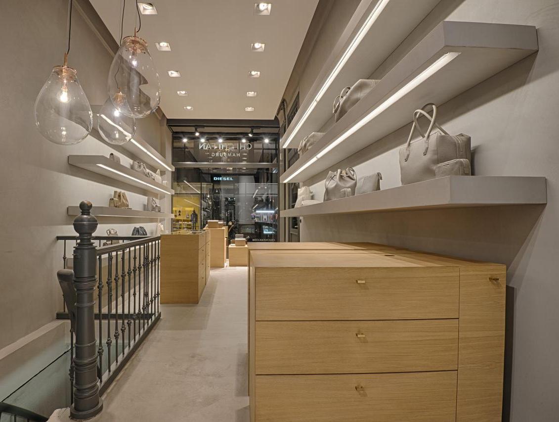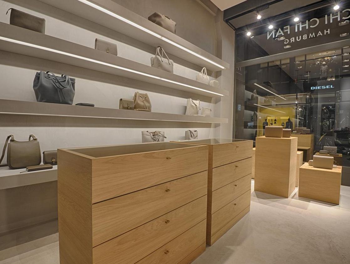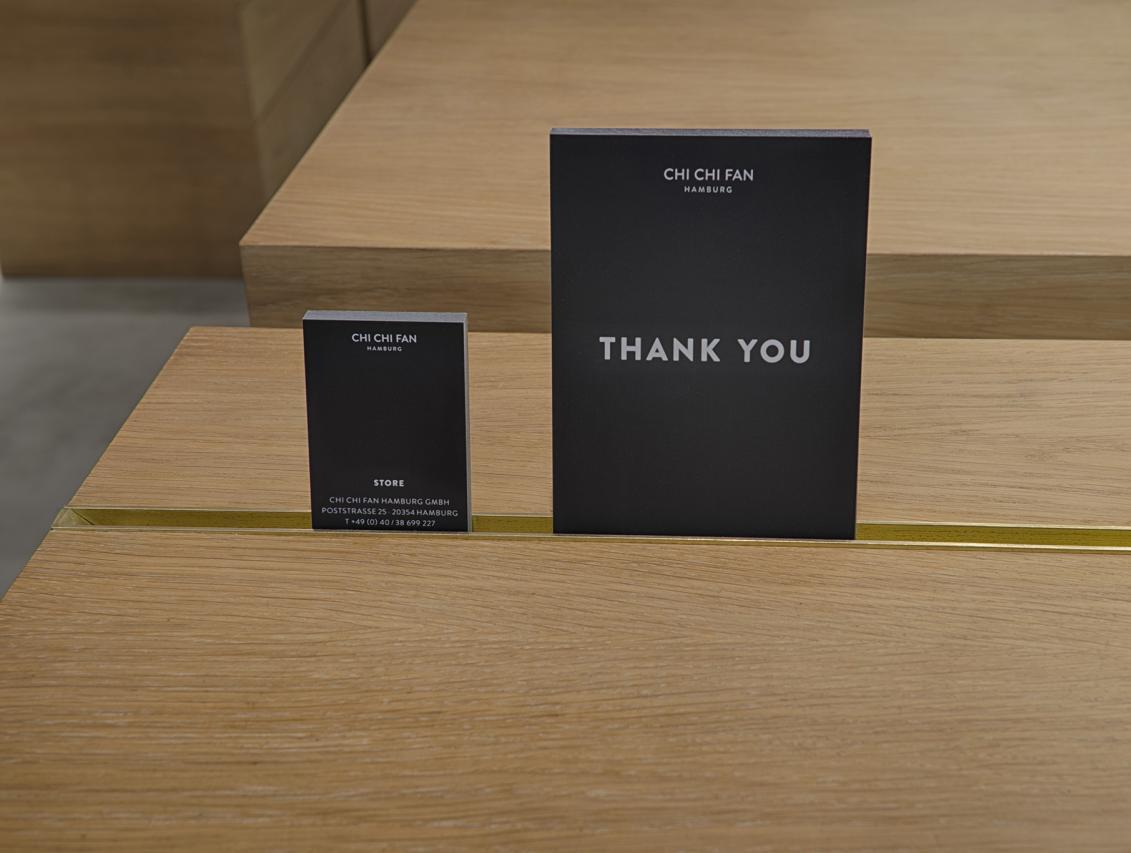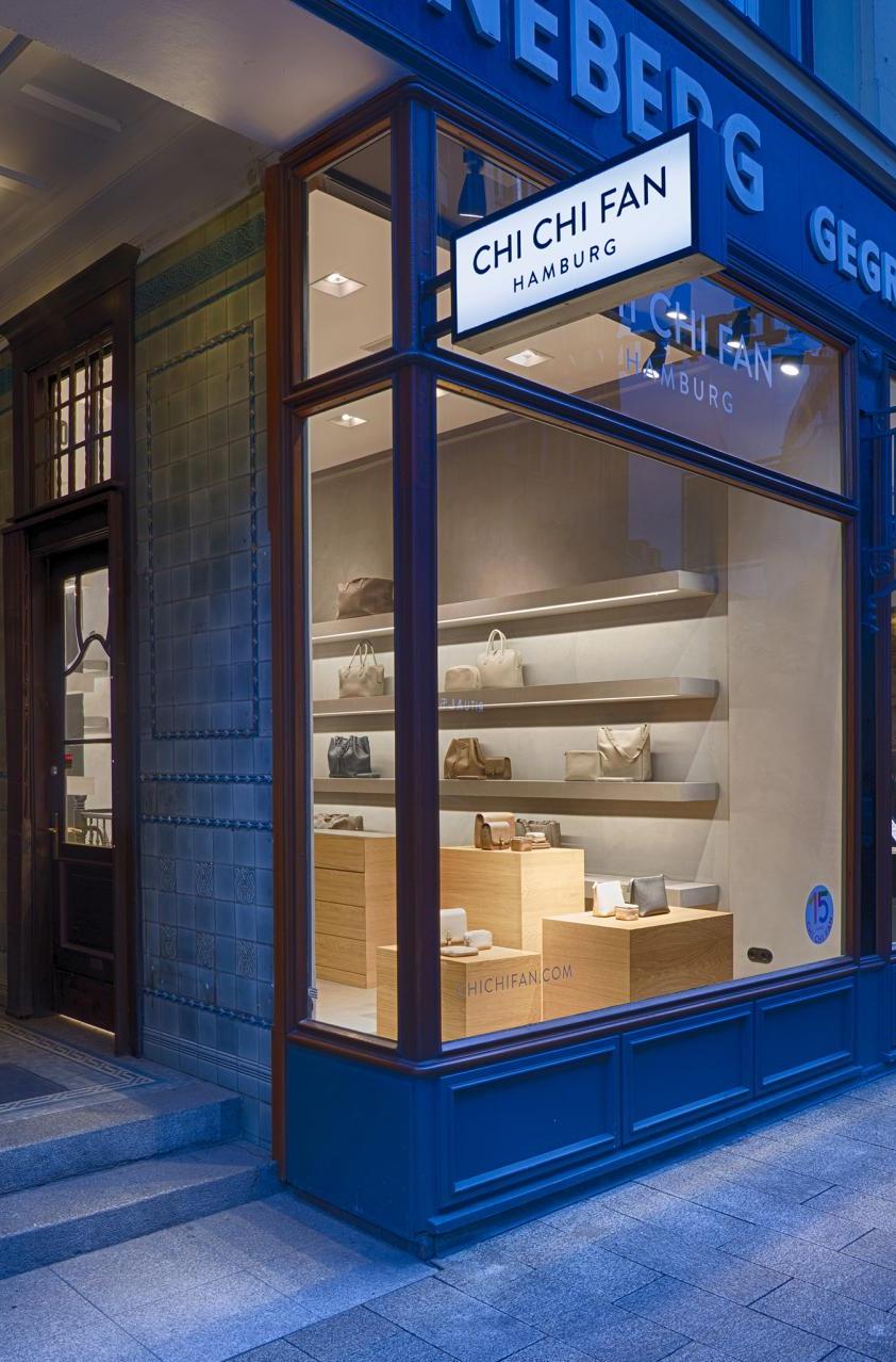 In Zusammenarbeit mit UNZEITIG Industrial Design haben wir für Chi Chi Fan Hamburg ein Corporate Interieur Design für ihren Mini-Flagship-Store in der Poststraße in Hamburg erstellt. Böden, Wände und Regalborde wurden fugenlos in Betonoptik beschichtet. Möbel für Accessoires, Kasse und Schaufensterdekoration sind in furnierter Eiche ausgeführt. Von den ersten Gesprächen und Skizzen bis zur Fertigstellung vergingen knapp 8 Wochen. Leistungsphasen der HOAI: LP 1-3, 5-8. UNZEITIG Industrial Design: www.unzeitig.de. Fotos: Axel Hass.