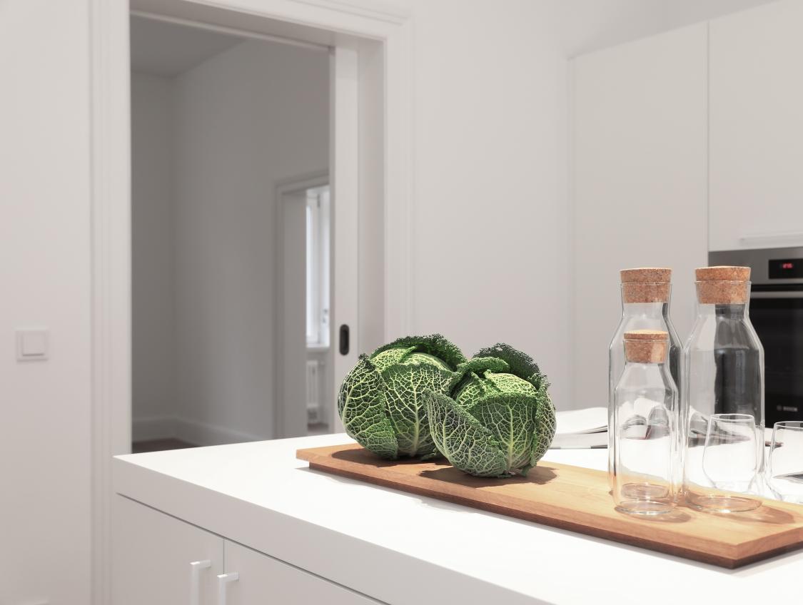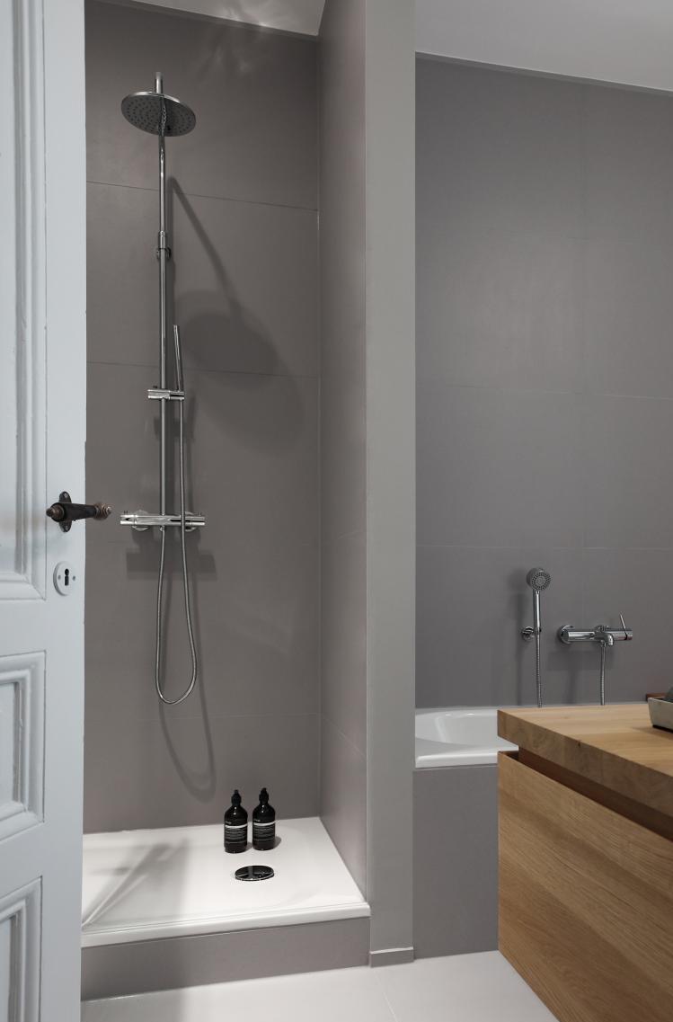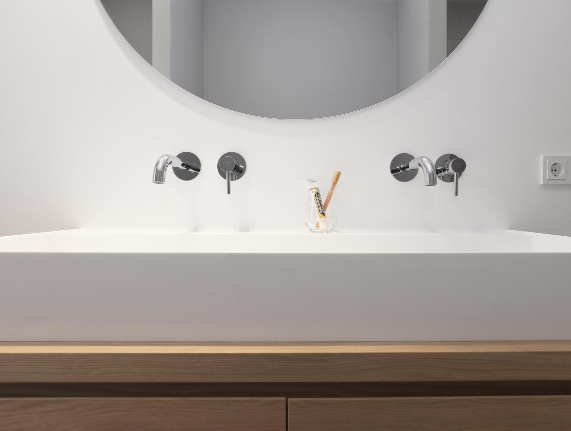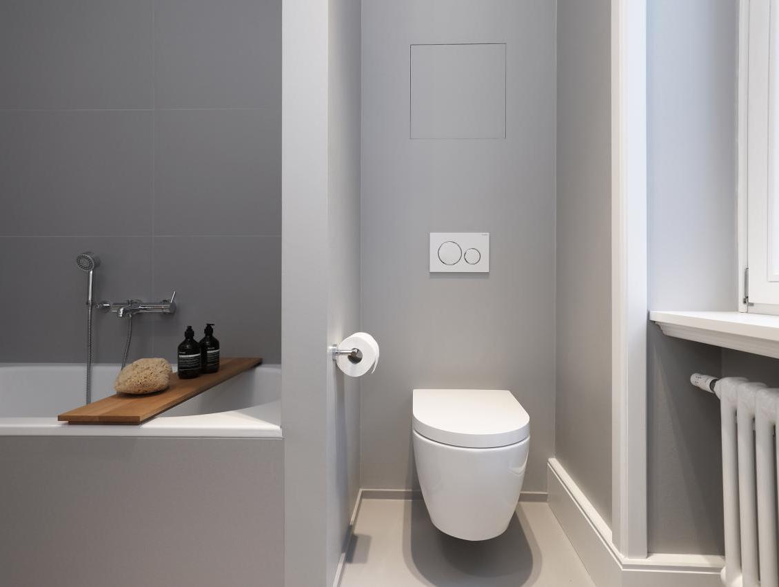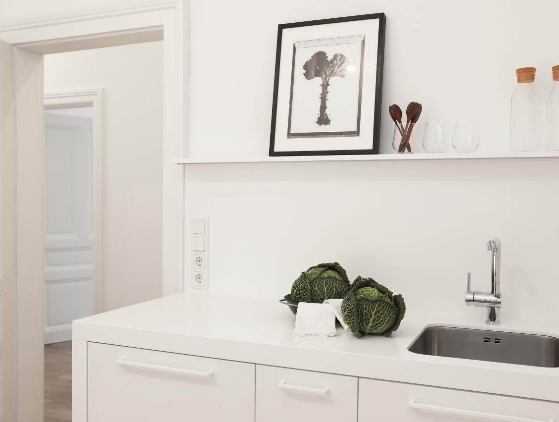 Leistungsphasen der HOAI: LP 1-3 und 5-8. Entwurf und Realisierung im Bestand. Sanierung und Innenausbau im Altbau, ca. 100 qm Wohnfläche, Bad und Gäste WC. Für unsere Bauherren sanierten und renovierten wir zwei ca. 100 qm große Altbauwohnung im Frankfurter Nordend. Sanitär-, Heizungs- und Elektroinstallation wurde vollständig erneuert. Wände und Abhangdecken wurden abgebrochen, andere ergänzt, glatt gespachtelt und mit Malervlies tapeziert. Bad und Gäste WC wurden neu gestaltet. Standardtüren wurden demontiert. Alle fehlenden Stilelemente wie Kassettentüren, hohe Sockelleisten und Profile an den Fensterlaibungen wurden aus dem Bestand anderer Wohnungen wieder verwendet oder originalgetreu nachgebaut. Bauseitige Bodenbeläge wurden durch matt geöltes Eichenparkett ersetzt. Einflügelige Kunststofffenster waren 2018 in allen Geschossen durch zweiflügelige Holzfenster ersetzt worden. 2012 wurde die Wohnung im EG des Wohnhauses kernsaniert. Fotos: Sandra Hauer, Nahdran Photografie.