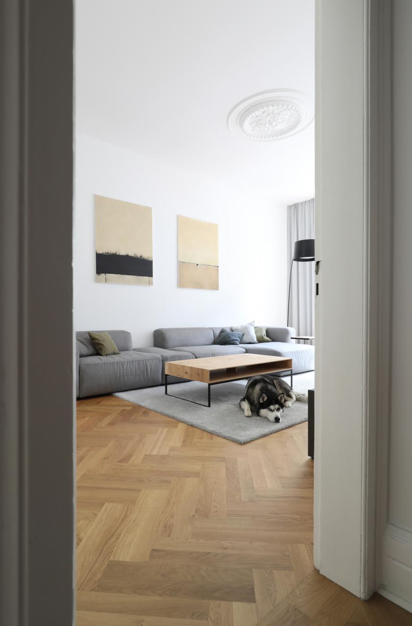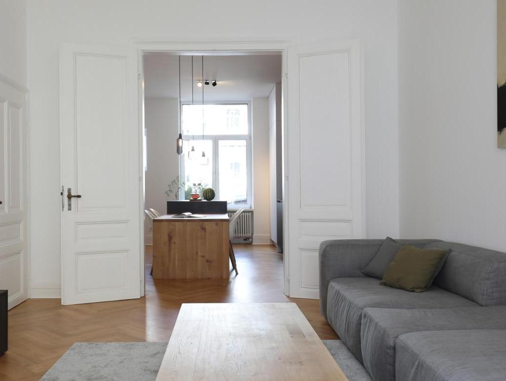 Entwurf und Realisierung, Sanierung und Innenausbau, 1.OG im Altbau, ca. 110 qm Wohnfläche, inkl. Küche und Bad, Frankfurt/M, Westend. Fertigstellung 2021. Fotos: Sandra Hauer, Nahdran Photografie.